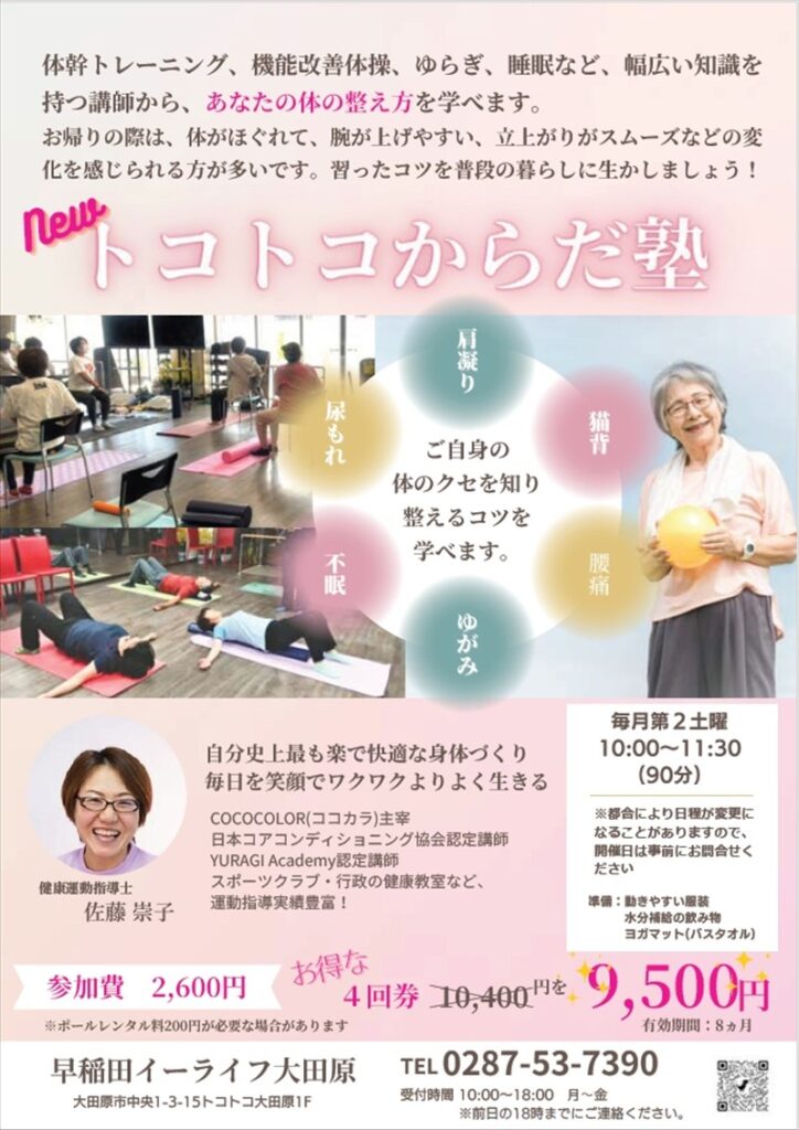 第2土曜日午前中に行っている体幹トレーニング中心のレッスンです