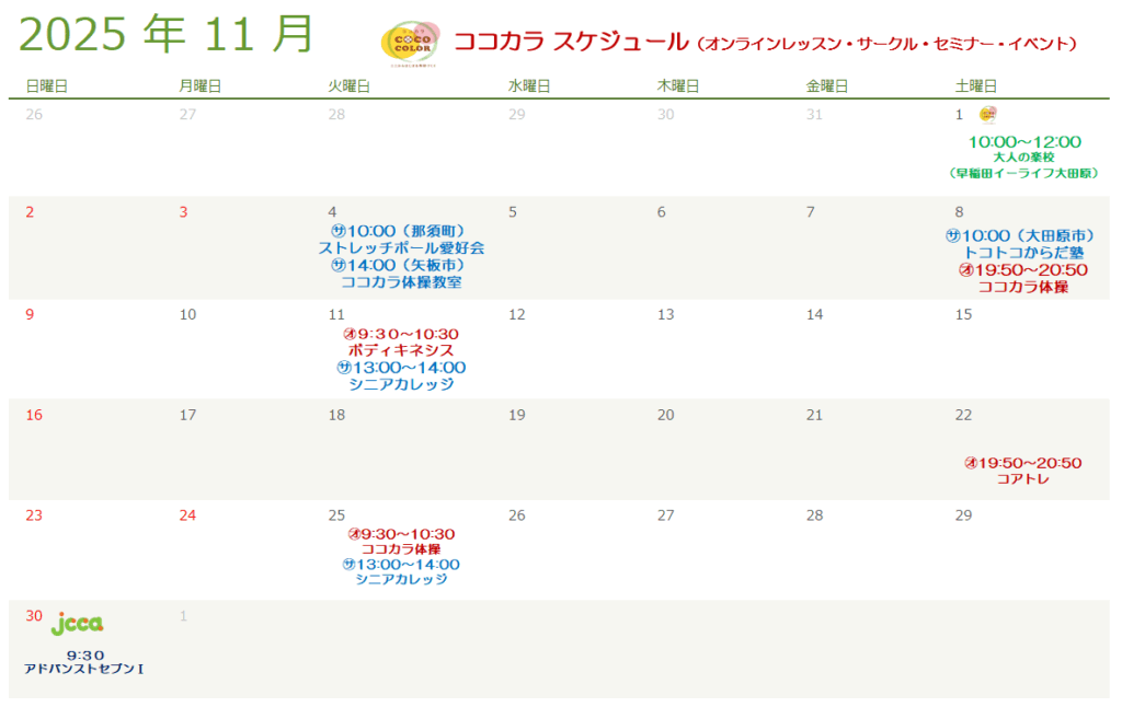 COCOCOLORでは自分の体と向き合い、自分から動いて気づく事で体と心をケアし、いくつになっても自分史上最も楽で快適な身体づくりを身に付け、毎日を笑顔でワクワク、よりよく生きるお手伝いをしています。